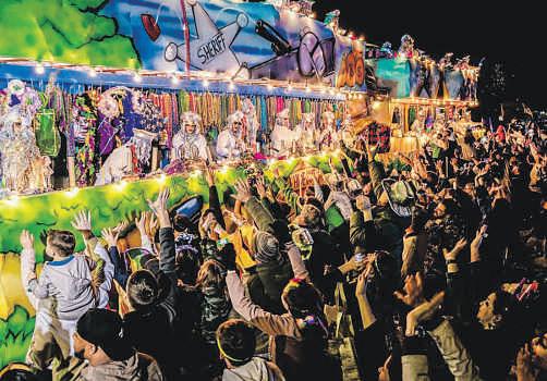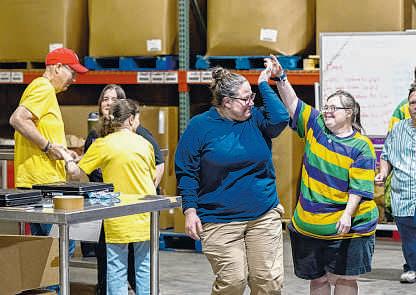 Volunteersdance during the MardiGras Mambo-themed food packing party on WednesdayatSecondHarvest Food Bank in Lafayette. ä See PACKING, page 5A