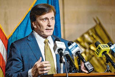 STAFF PHOTO By JAVIER GALLEGOS Louisiana Treasurer John Flemingaddresses reporters as he signs up to runfor the U.S. Senate on Wednesday.