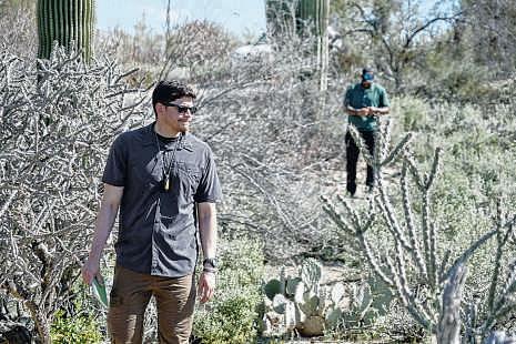 Law enforcement agents check vegetation areas around Nancy Guthrie’s home in Tucson, Ariz., on Wednesday.