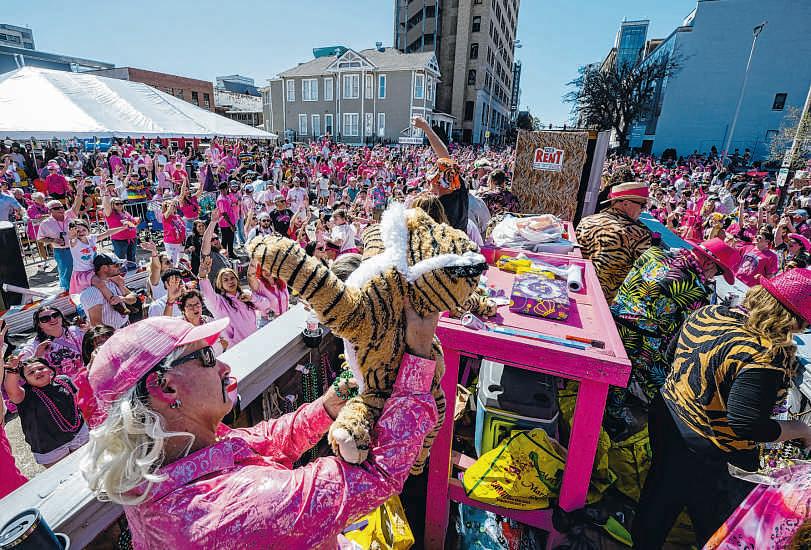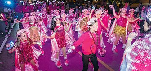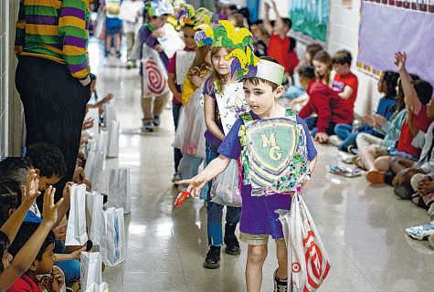 ABOVE: Broadmoor Elementary students march through the halls of the school during their annual Mardi Gras Parade on Thursday.