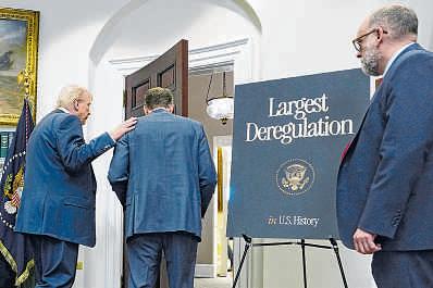 Donald Trump speaks during an event Thursday with Environmental Protection Agency Director Lee Zeldin announcing that the EPA will no longer