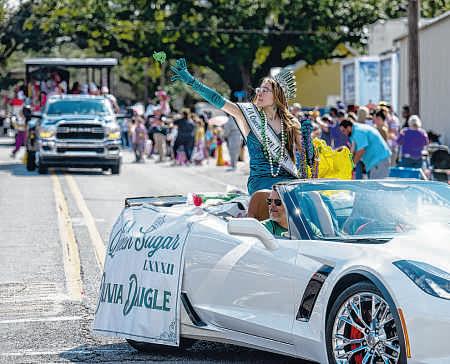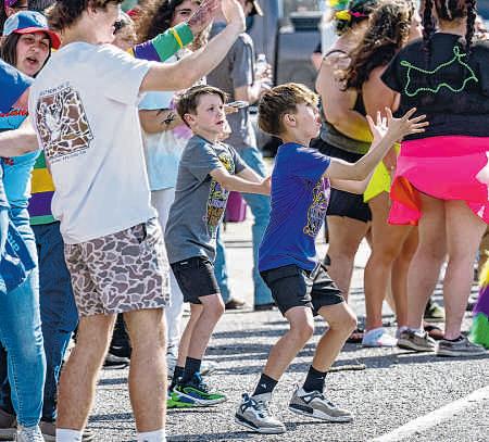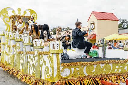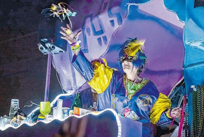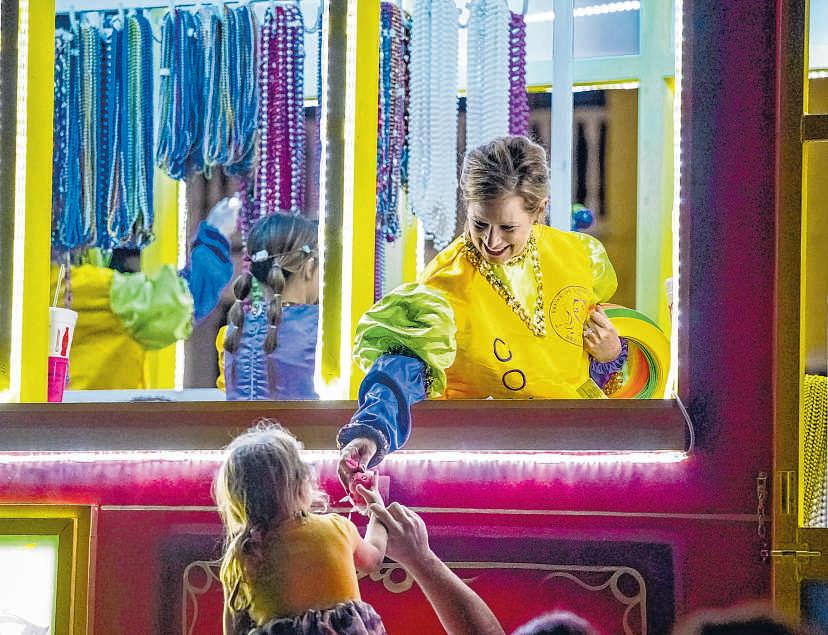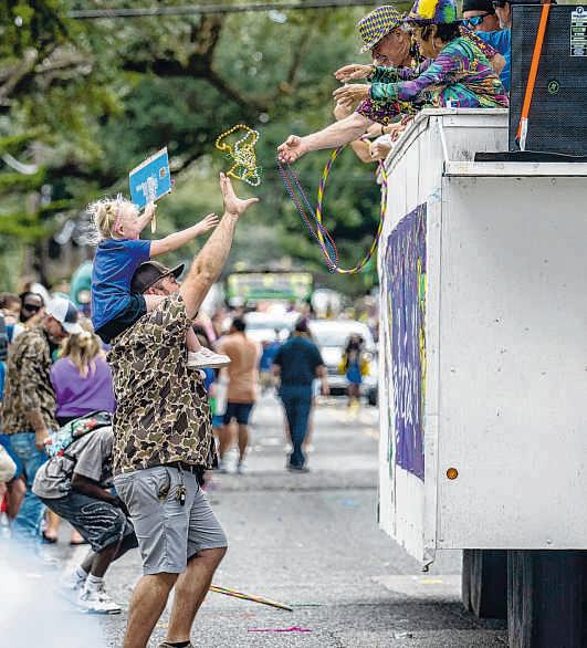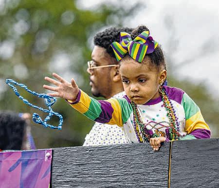 ABOVE: Afloat rider tosses ahandful of candy during theKrewe of Comogo paradeinPlaquemine on Sunday MIDDLE RIGHT: Arider hands atoy to achildduring the Krewe of Comogo parade on Sunday BOTTOM RIGHT: The royal court float of King FrankCorcoran and Queen Britney Templerolls on Sunday duringthe inaugural Zachary MardiGras Parade.