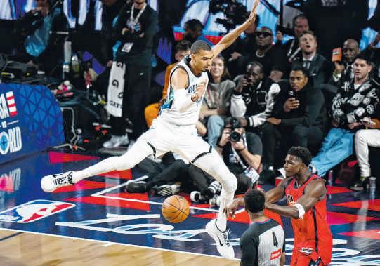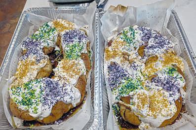 ABOVE: Mardi Gras artmimics life as former Saints quarterback Drew Brees, left, looks likethe float statue that he wasriding nexttoduring the Krewe of Bacchus parade in NewOrleans on Sunday