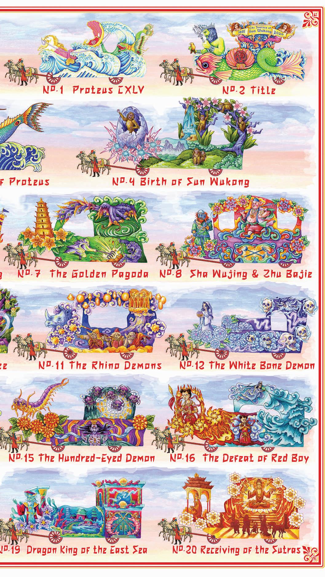 2. Title: “The Journey of SunWukong” As Proteus emergesfromthe swirling waters, he is escorted by hiscolorful creatures of thesea.The Old- Manof-the-Seareveals therealmsofSun Wukong, the Monkey King