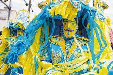 On Mardi Gras in Eunice, participants take to the streets early in the morning on horseback or on foot and wind through the countryside. Wearing colorful, handmade costumes, which include masks and tall, pointed hats, known as capuchins, they paradepast farms, stopping to playfully ‘beg’for food anddrinks. At differentpoints along theway,the leader,referred to as thecapitaine, releases achicken for thefrenziedrevelers to runafter When the entourage arrives back in town mid-afternoon,they partake ina communal gumbo.