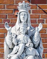 A statue of the Virgin Mary and baby Jesus is displayed Feb 24 outside St. Mary’s Church in Cranston, R.I. An investigation by the state Attorney General’s Office found that 75 Catholic clergy molested more than 300 victims since 1950, but officials stressed that the number of victimized children and abusive priests is likely much higher