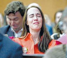 Alli Naylor mother of Wynne Naylor who died at Camp Mystic, reacts Wednesday as attorneys at the Travis County Courthouse in Austin, Texas, argue for a temporary restraining order regarding the camp.