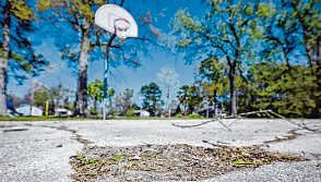 Blueberry Street Park has large cracks and holes.