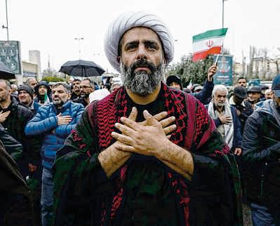 Acleric beats his chest as he mourns FridayinTehran, Iran, during the funeral procession of Iran’sintelligence minister Esmail Khatiband, according to Iranianofficials, his wifeand daughter