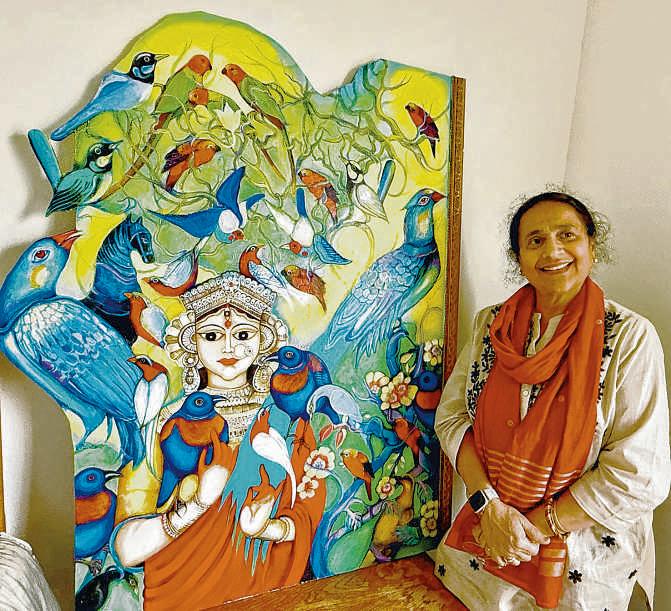 Baton RougeartistGeeta Davé,former Talented Arts Program teacher at Glasgow Middle School, shows acutout wooden painting sheisrevising.Now that she’s afull-time artist, shehopes to create enough paintingsfor acollection.
