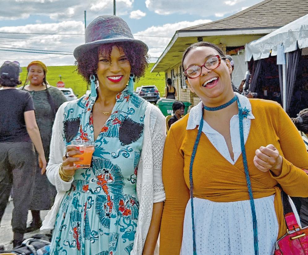 Organizers in the Rolling on the River Alliance greet participants Saturday during the River Road Juke Joint. They are, from left, Alaina Dunn, of the COOL Cooperative, and Joy Banner, of the Descendants Project.