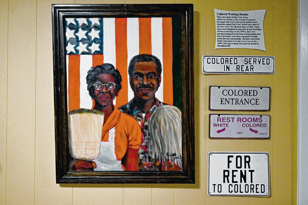 A painting is displayed alongside Jim Crow era signs during the reopening of the River Road African American Museum in Donaldsonville.