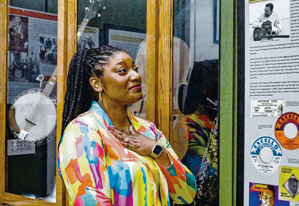 Sabine McCalla, a singer featured in the movie ‘Sinners,’ performs at the River Road Juke Joint event.