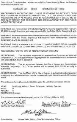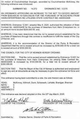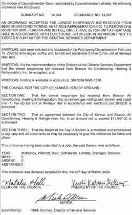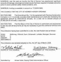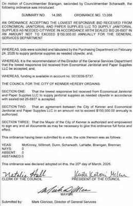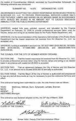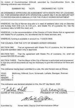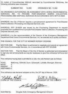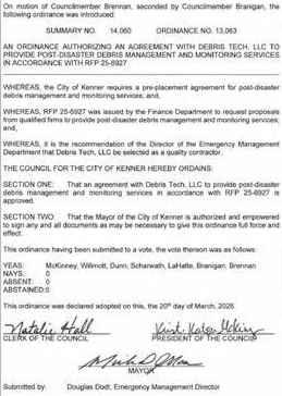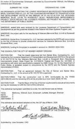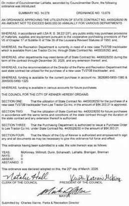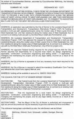 TheCouncilmen of the Town of Jean Lafittemet in aRegular Meeting with the following members present:Councilman Bartholomew,Councilwoman