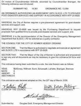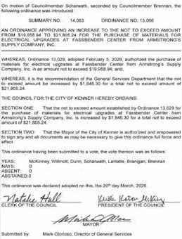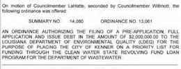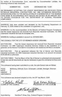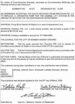 On amotion by Councilman Bartholomew and secondedby Councilwoman Creppel the following resolution was adopted: Aresolution to approvea security system for the Louisiana Wetland Education Center