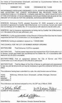 By virtue of a WritofSeizure and Sale di‐rectedtomeby the Honorable JudgesofCivil DistrictCourt for theParishof Orleans,inthe above entitled cause,I will pro‐ceed to sell by publicauction, onthe ground floor of theCivil DistrictCourt Building, 421 LoyolaAvenue, inthe FirstDis‐trict of theCity onMarch 26 2026, at 12:00 o'clock noon the following described prop‐ertytowit: 8051 CURRAN RD NEW ORLEANS, LA70126 LOT1 -SQUARE 4 3RD MUNICIPAL DISTRICT ACQMIN: 1236086 EDGELAKE COURTEXTEN‐SIONSUBDIVI‐SION WRIT AMOUNT: $159,196.76
