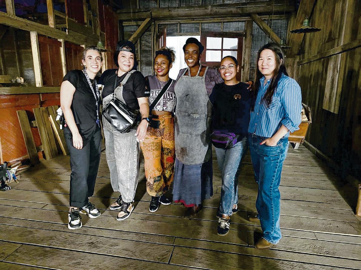 PROVIDED BY ALLISON LACOUR New Orleans makeup artist Allison LaCour, in overalls, with several of her colleagues on set of ‘Sinners.