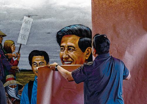 A restored mural by the British graffiti superstar Banksy is on display at The Louisiana State Museum.
