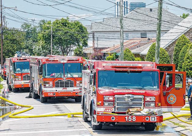 The Jefferson Parish Fire Department puts out a fire in Metairie in 2025. Union leaders and Jefferson Parish officials arelocked in a fight overpay