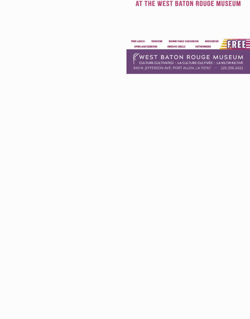 CAPITOL PARK MUSEUM: 660 N. Fourth St. “Grounds for Greatness: Louisiana and the Nation,” “The Louisiana Experience: Discovering the Soul of America,” “African American History,” “Music and Musicians” and “Mardi Gras,” permanent exhibits. (225) 342-5428 or louisianastatemuseum.org.
