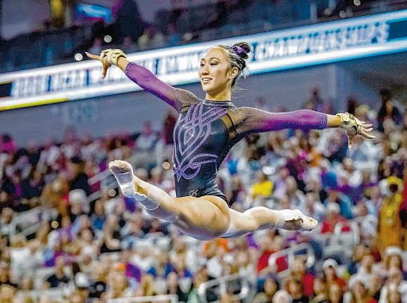 LSU led going to the final rotation but ended up falling justshort of Oklahoma, 198.1625-198.0750 at Dickies Arena. For the Tigers, it’s thefourthtimesince 2016 that they have finished second in the NCAA final, allbehind the Sooners, who won for the eighth time. Florida (197.6875) was third and Minnesota (197.375) wasfourth. “I’ve been part of winning thisthing alot over the years,” LSU coach Jay Clark said.“Idon’t know that I’ve been as proud of ateam as this one, because they’re gutsy.They fought and foughtand