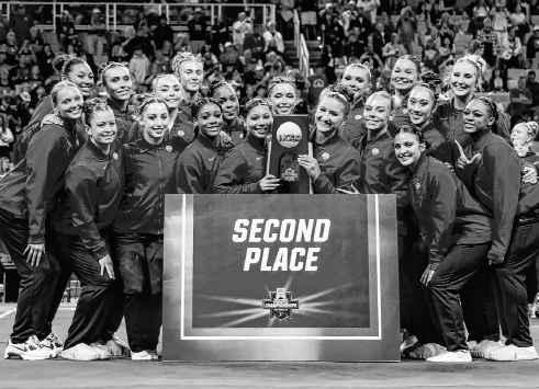 FORTWORTH,Texas TheLSU gymnastics team stood on thepodiumafter Saturday’sNCAAchampionship meet, watching the Oklahoma Sooners lift a first-place trophy that was frustratingly close to going homewith the Tigers forthe second time in three years.