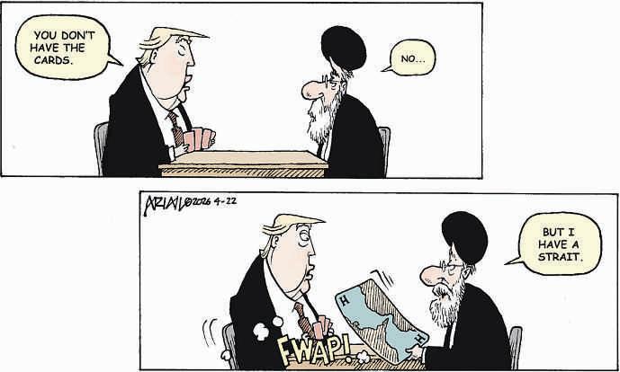 Iran attacked three ships this week, while the U.S. maintains a blockade on Iranian ports. Trump has ordered the military to “shoot and kill” small boats that could be placing mines.