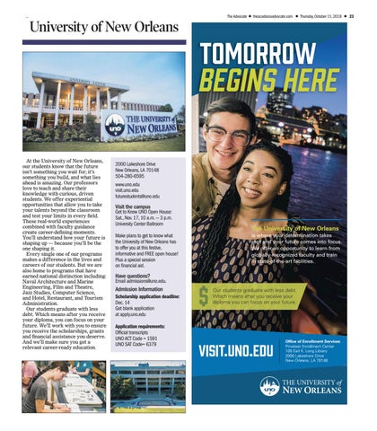 2000 Lakeshore Drive New Orleans, LA 70148 504-280-6595 www.uno.edu visit.uno.edu futurestudents@uno.edu