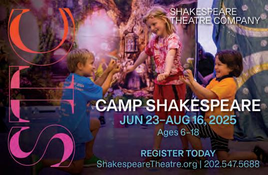 ShakespeareTheatre.org/Camp-Shakespeare Dive into the world of one of the greatest playwrights in history: William Shakespeare. Working with theatre professionals, campers unlock Shakespeare’s plays with text analysis, transform into characters through voice and movement, wage battles with stage combat, and develop acting skills. Sessions culminate in a performance at the Shakespeare Theatre Company.