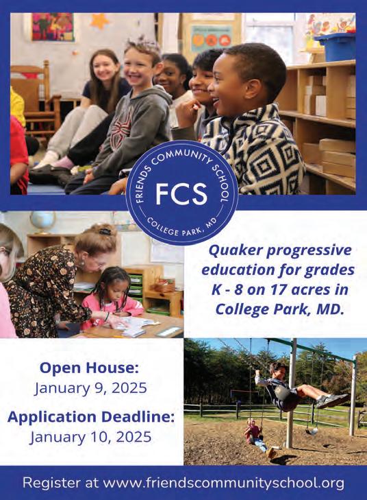 FCS is a purposeful and joyful school that engages and inspires young children through adolescence. Located just 15 minutes from Capitol Hill on 17 acres in College Park, MD, FCS offers a diverse and inclusive community, a commitment to educating the whole child, and a curriculum emphasizing child-centered and hands-on learning. FCS students are lifelong learners, courageous risk-takers, and joyous peacemakers who matriculate to rigorous independent, parochial, and public magnet schools in the greater Washington, DC, area. See our website for updates and details regarding our open houses and application process.