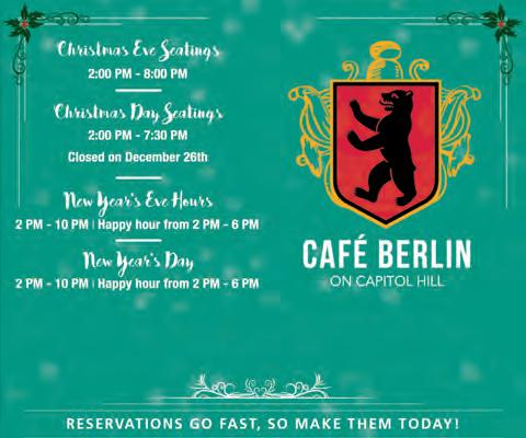 On Saturday, Dec. 20, at 11 a.m., and Wednesday, Dec. 24, at 11 a.m., treat the whole family to “A Family Christmas” as the Choral Arts Chorus lls the concert hall with festive cheer, holiday classics, sing-alongs and a special visit from Santa to make spirits bright. This one-hour concert is perfect for children ages ve and up. Tickets are $20 to $59. www.Kennedy-center.org
