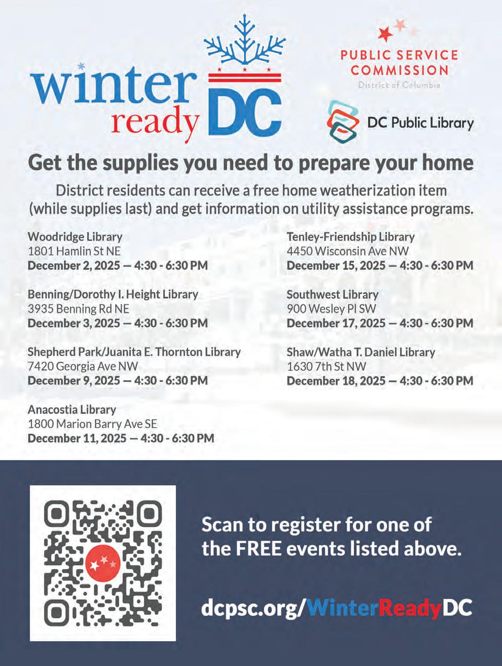 On Saturday, Dec. 13, from 2 to 4 p.m., join Martin Luther King Jr. Memorial Library, 901 G St. NW, with Anna, Elsa, Kristo , Olaf and Sven, for a screening of “Frozen” (2013, rated PG). The lm will be shown with ASL and open captions. For reasonable accommodations, contact DCPLaccess@dc.gov or 202-727-2142.