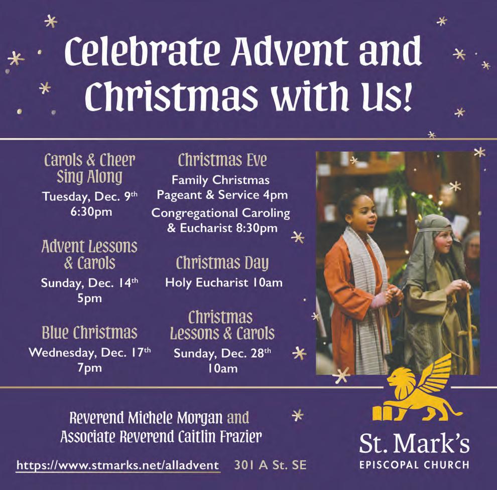 The Choir of the Basilica of the National Shrine of the Immaculate Conception, 400 Michigan Ave. NE, performs a onehour Christmas Concert on Saturday, Dec. 20, at 6 p.m., in the Great Upper Church. All are welcome to attend this free night of Christmas choral music. Seating is on a first-come, firstserved basis with no ticketing, advanced registration or reservations. There’s plenty of parking. www.nationalshrine.org