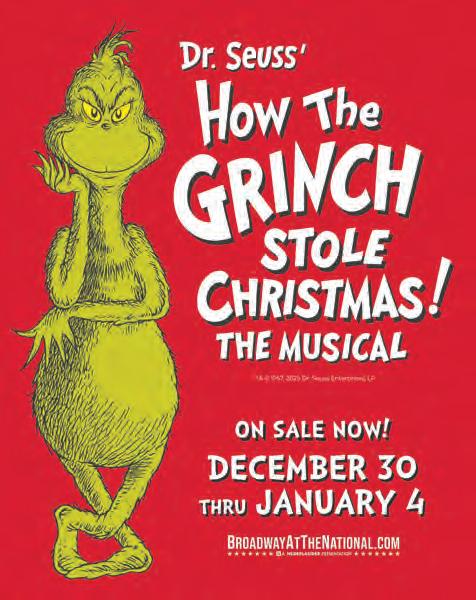 Dr. Seuss’ “How the Grinch Stole Christmas! The Musical” is a Broadway holiday production that features hit songs like “You’re a Mean One Mr. Grinch” and “Welcome Christmas” from the original animated special. Sets and costumes inspired by Dr. Seuss’ original illustrations capture the true meaning of the holiday season. “How the Grinch Stole Christmas! The Musical” is at the National Theatre, 1321 Pennsylvania Ave. NW, from Dec. 30 to Jan. 4, 2026. www.thenationaldc.com