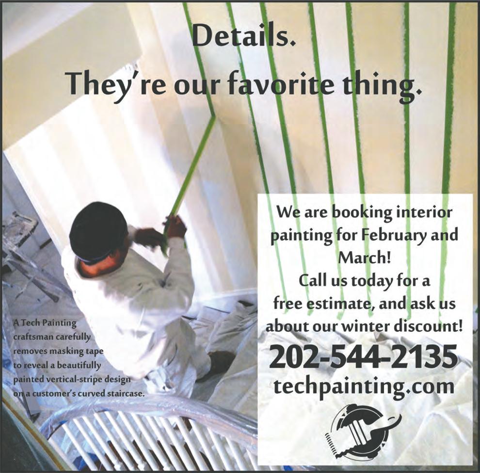 February 2023 ★ 115 FITNESS Maximize your Health! Bikram Hot Yoga (26 + 2) -plusHot Pilates • Barre • Warm Flow Piyo and Spa Yoga Book your classes today! hotyogacapitolhill.com 410 H Street NE • 202-547-1208 hotyogacapitolhill@gmail.com New Student Special* One week class pass – all inclusive $49 *For local, new students only. We are Open! Please pre-register, and arrive 10-20 minutes before the class starts. Masks are NOT required while on your mat taking class, but are required at other times at the studio. (Subject to updates) We continue to offer ZOOM and on-demand classes. FLOORS Residential Floors Dedicated to Perfection • Sanding and Refinishing • Installation • Repairs • Cleaning & Waxing 7 days a week - Free Estimates Reasonable Rates Residential & Commercial (301) 990-7775 Family owned and operated 3 Generations of Experience FOUNDATIONS FOR RENT Specializing in Foundation Repair Services, Problems, Inspection and Sinking YOUR FOUNDATION IS THE MOST IMPORTANT PART OF THE HOUSE ELITE FOUNDATION & REPAIRS If You Notice Your House Foundation is Settling, CALL US NOW! (301) 213-5050 Foundation Concrete Retaining Walls Foundation Repair Concrete Slab Underpinning John Himchak Construction Co. Inc. SATISFYING CAPITOL HILL CUSTOMERS FOR OVER 27 YEARS Speak Directly with Owner John Calls Preferred 202.528.2877 JohnHimchak@hotmail.com Basement Excavation Underpinning Foundation Repair Waterproofing Concrete Masonry Tuck pointing Paver & Flagstone Installation Garages Repaired Garages Built New Demolition Additions Renovations UNCOMPROMISED QUALITY REASONABLE RATES WARRANTY ON ALL WORK LICENSED BONDED INSURED MEMBER OF DOORS & WINDOWS