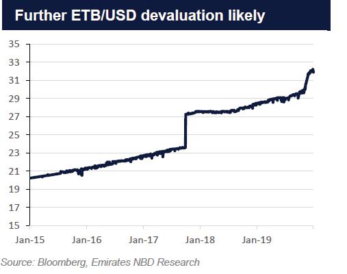 While Ethiopia has achieved spectacular growth of late, averaging 9.5% over the past 10 years, this has not come without a cost to its macroeconomic stability. The current account deficit has been persistently wide (6.4% of GDP last year), government debt has risen to 62% of GDP, and FX reserves have been perilously low at times. These imbalances were brought to the fore as domestic political risk rose in 2018, slowing remittances and other FX inflows, and prompting the UAE to deposit USD 1bn at the central bank in June in order to support the economy. The UAE also pledged USD 3bn in aid and investments to the country.