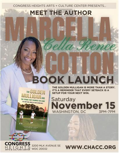 Washington, D.C. — Alabama author Marcella Cotton (Cella Renee) is bringing her powerful story of faith, recovery, and second chances to the nation’s capital. The Meet-theAuthor and Book Launch Celebration for her debut memoir, The Golden Mulligan and the Stroke That Changed the Game: The First Nine – Where Life and Lessons Meet, will be held on Saturday, November 15, 2025, from 3 p.m. to 7 p.m. at The Congress Heights Arts and Culture Center, 3200 Martin Luther King Jr. Avenue SE, Washington, DC 20032.
