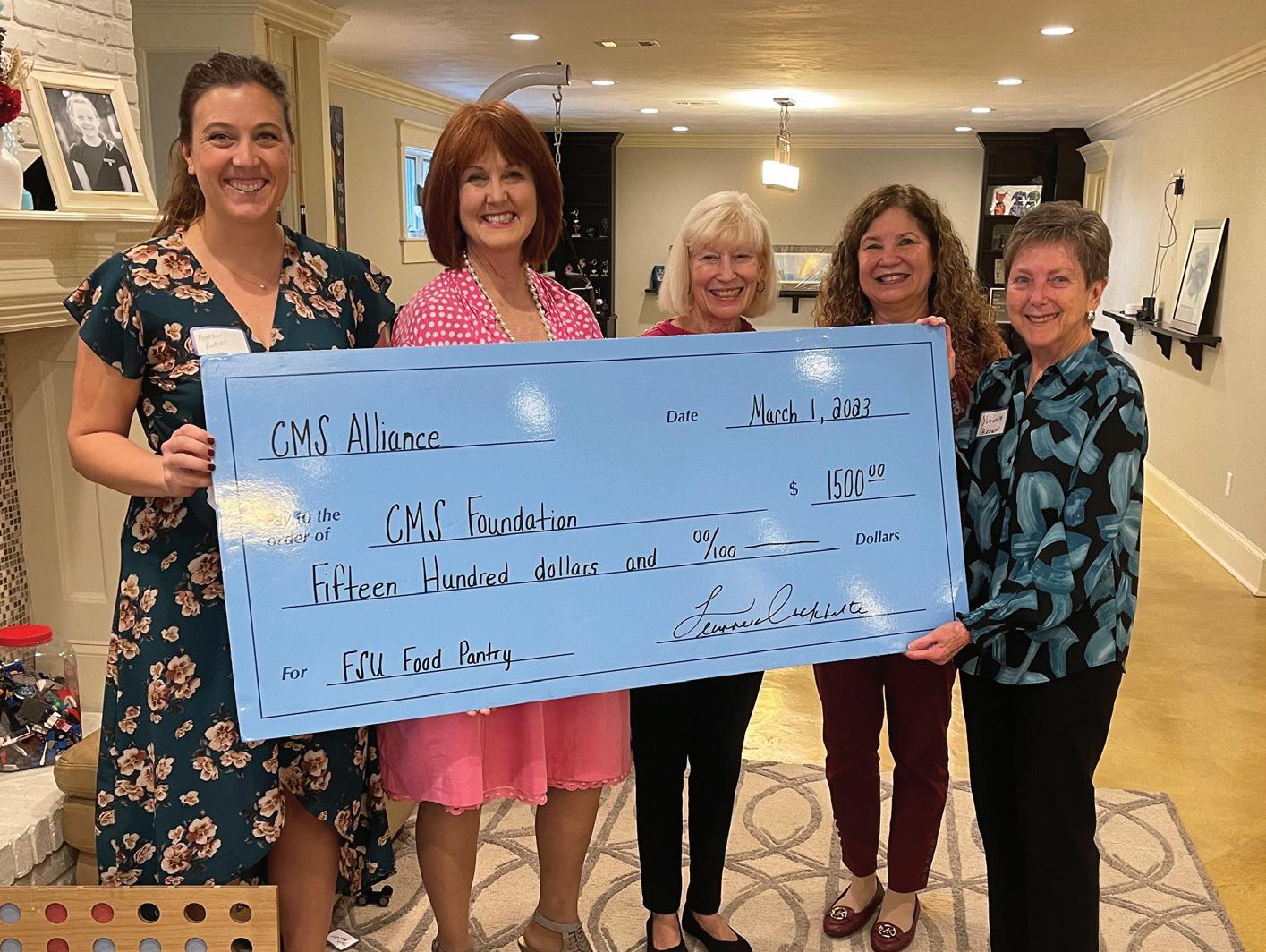 On behalf of the Capital Medical Society Alliance, their president, Heather Redfield, presented a check to the Capital Medical Society Foundation’s Board Directors Yvonne Brown and Paula S. Fortunas, CMSF Executive Director Pam Irwin, and FSUCOM-TRC Administrator Elaine Geissinger for the CMSF’s FSU College