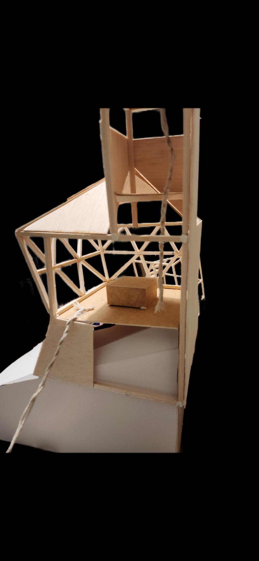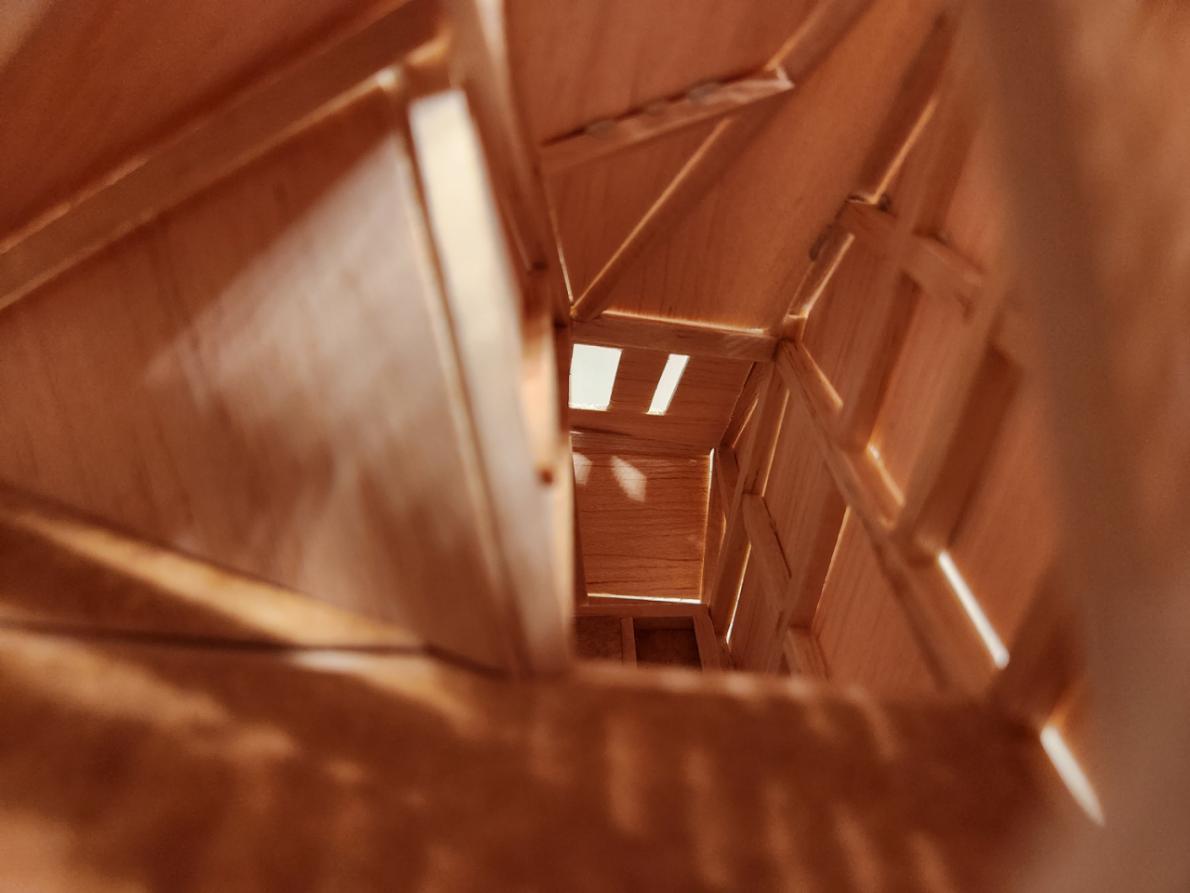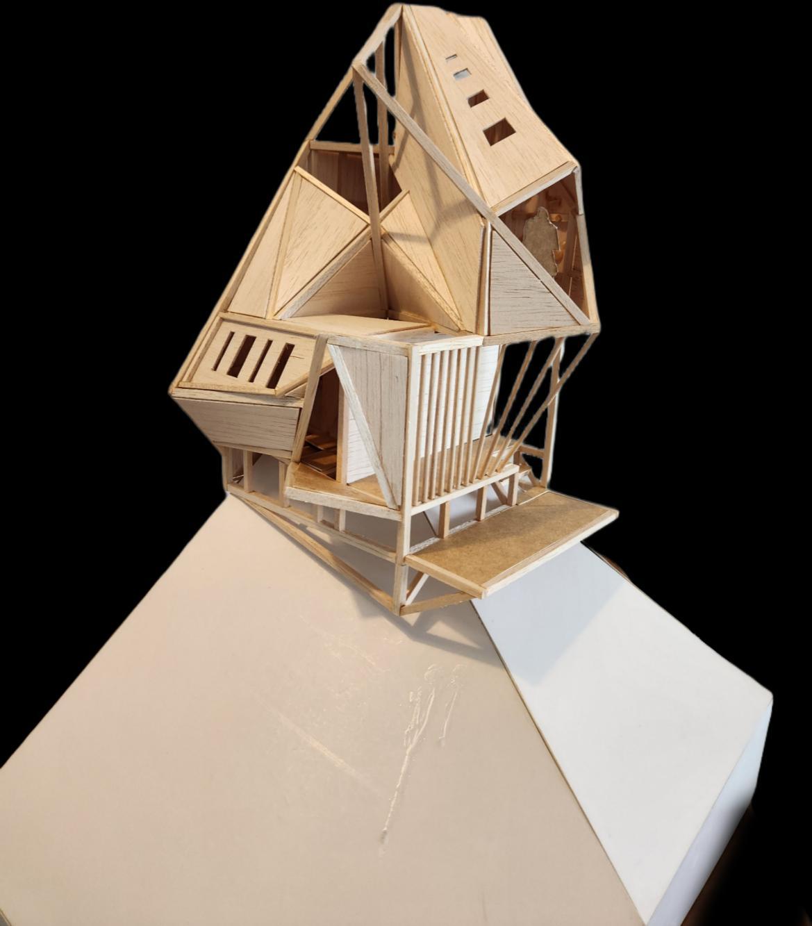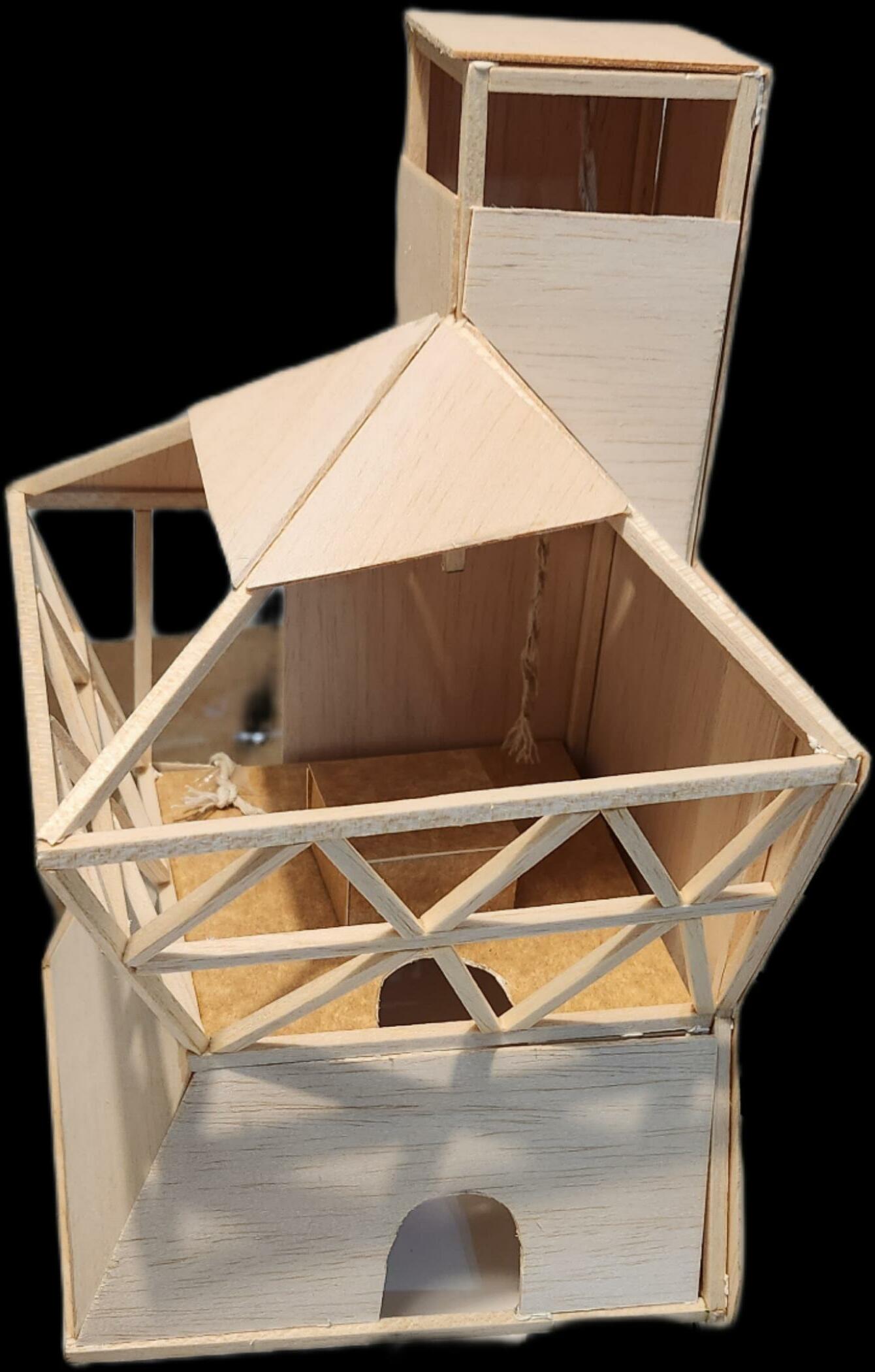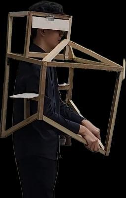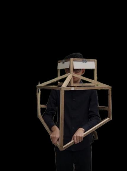 TectonicstudyandthattranslatepaperboardSpatial Apparatusintoskeletalframe,crafting1:1ofthedevice withwoodenframingandenvelop.