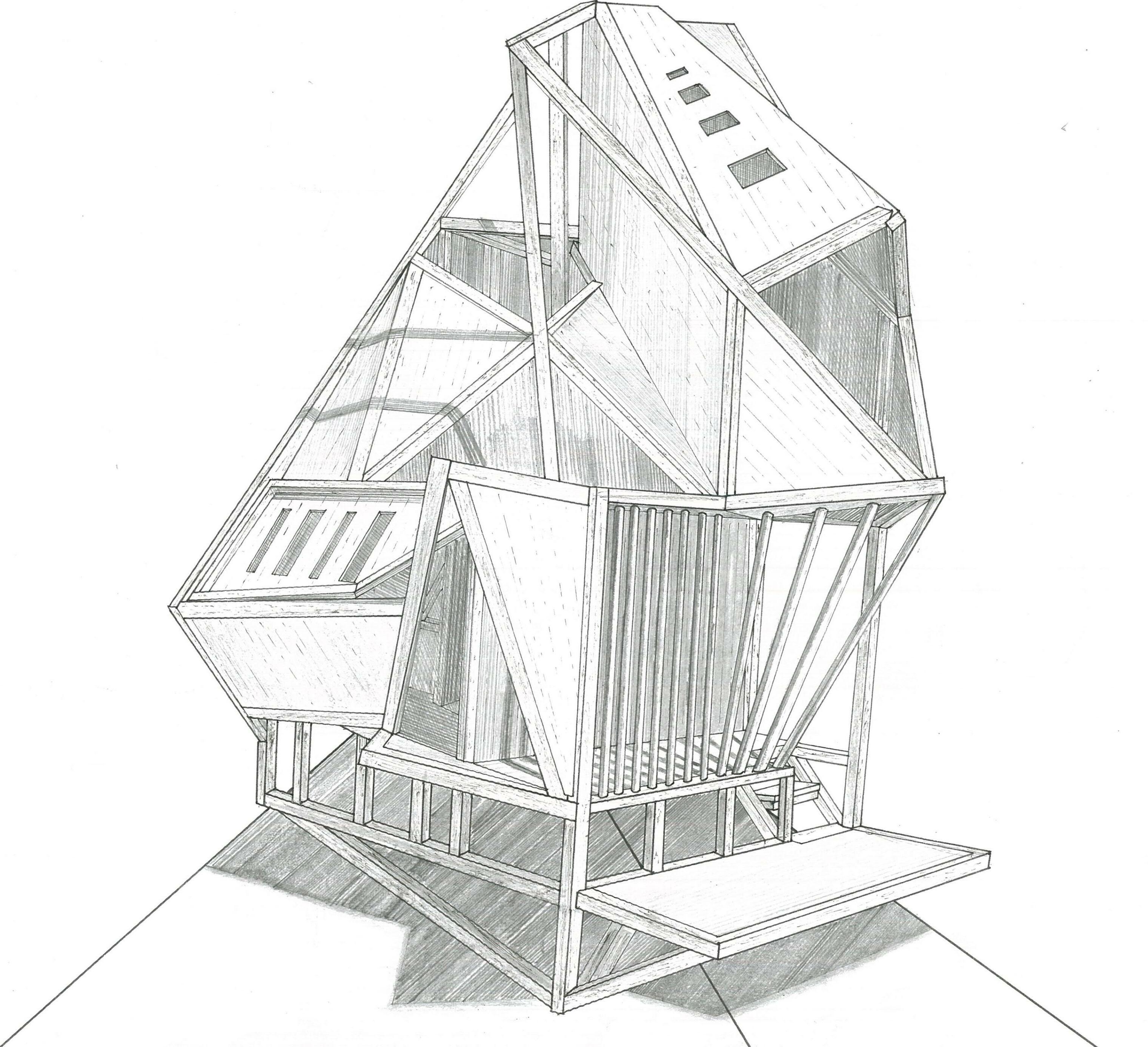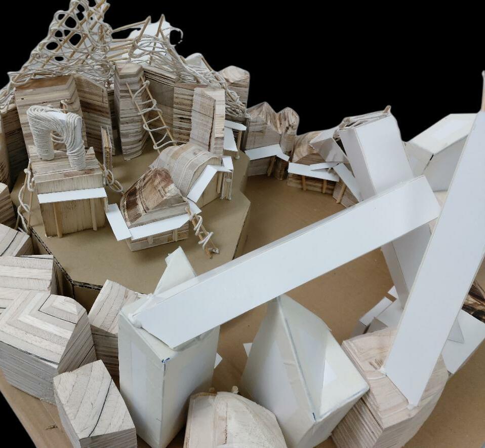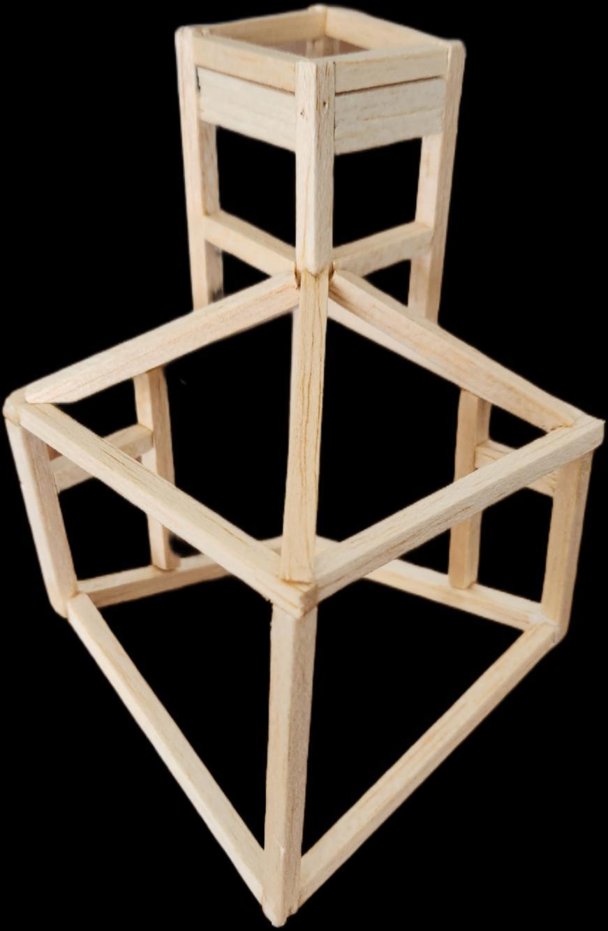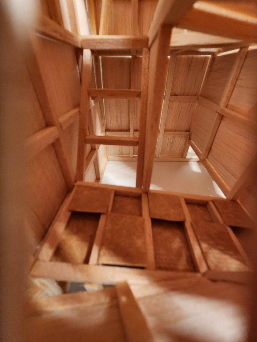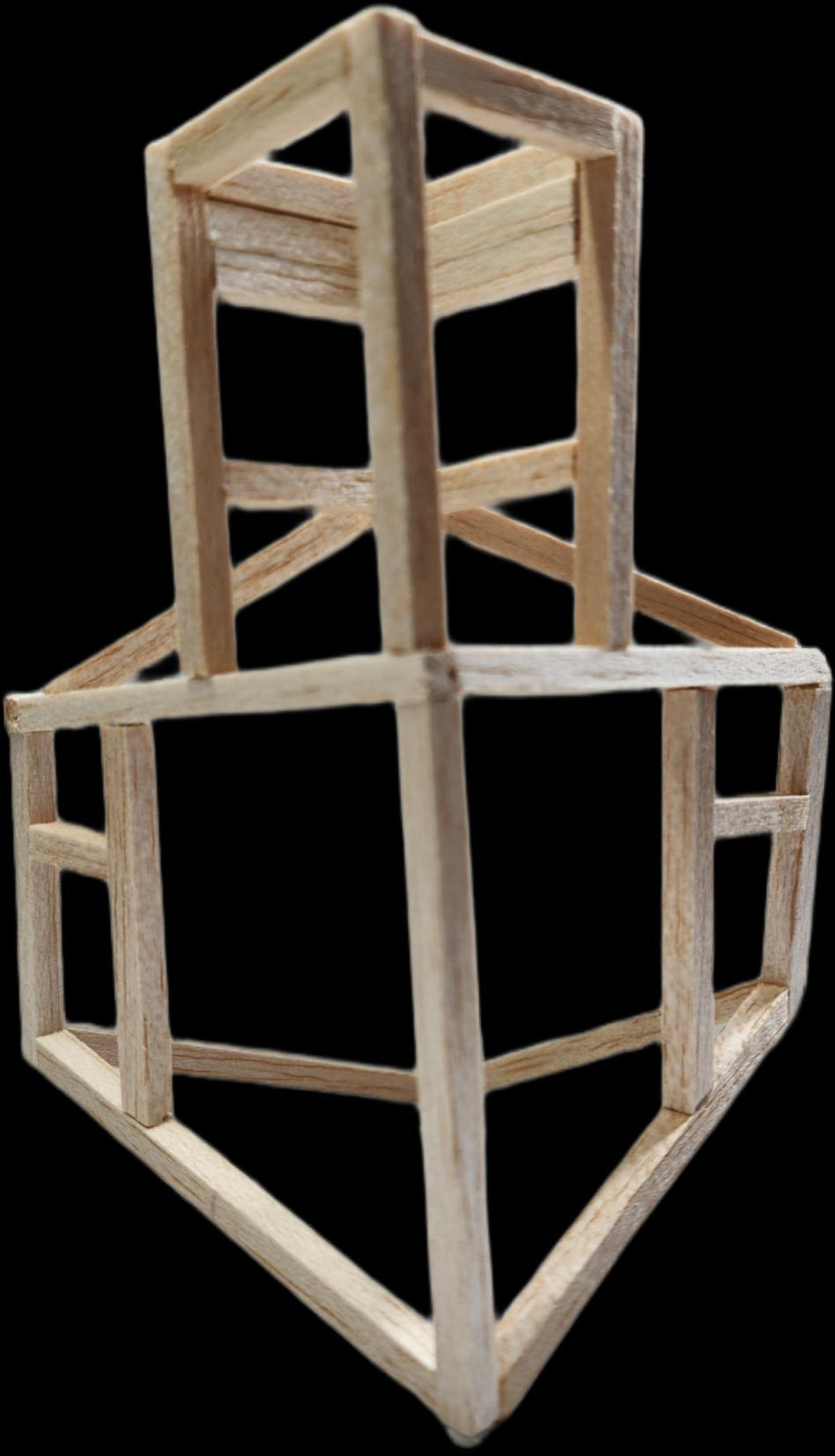 TectonicstudyandthattranslatepaperboardSpatial Apparatusintoskeletalframe,crafting1:1ofthedevice withwoodenframingandenvelop.