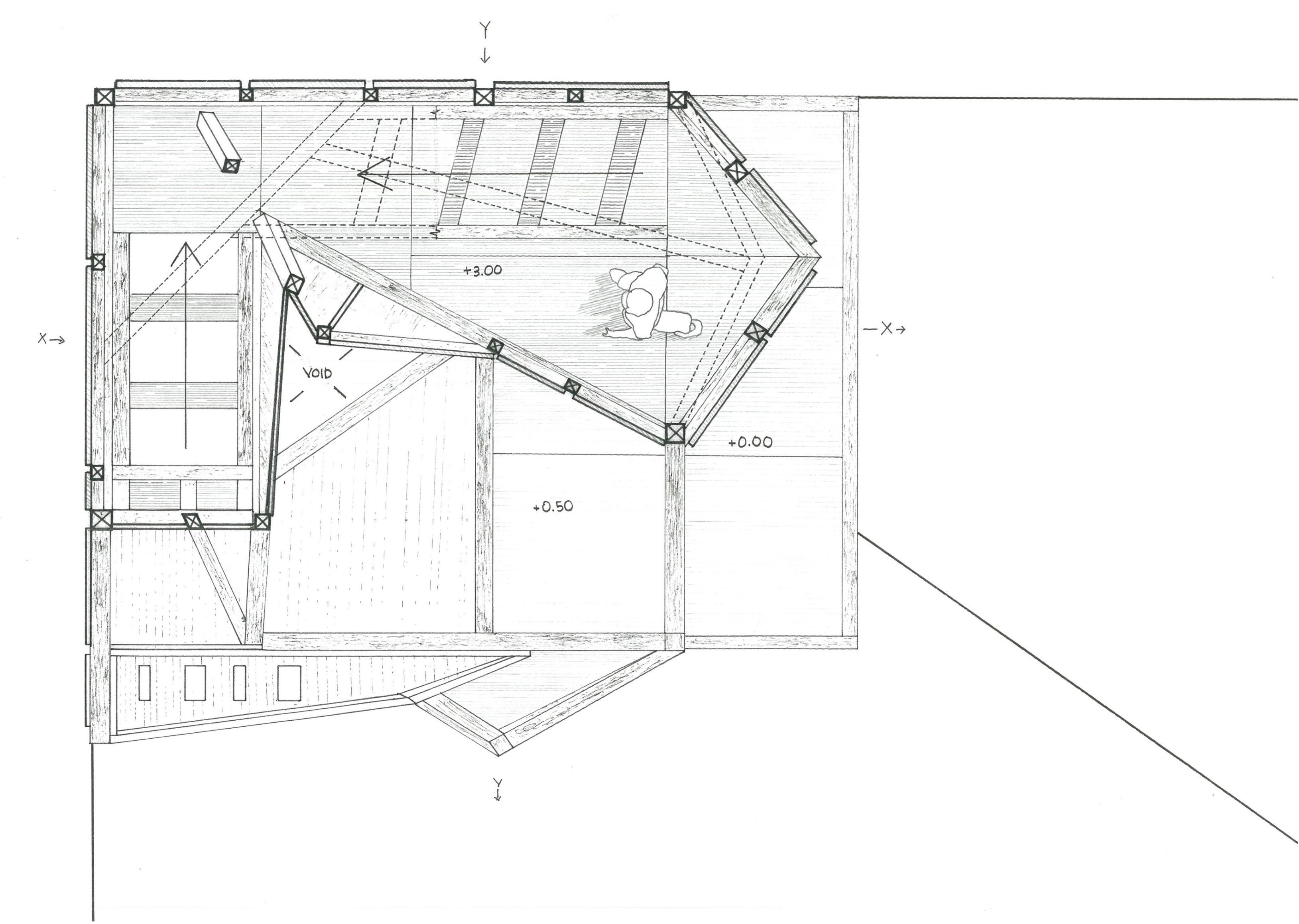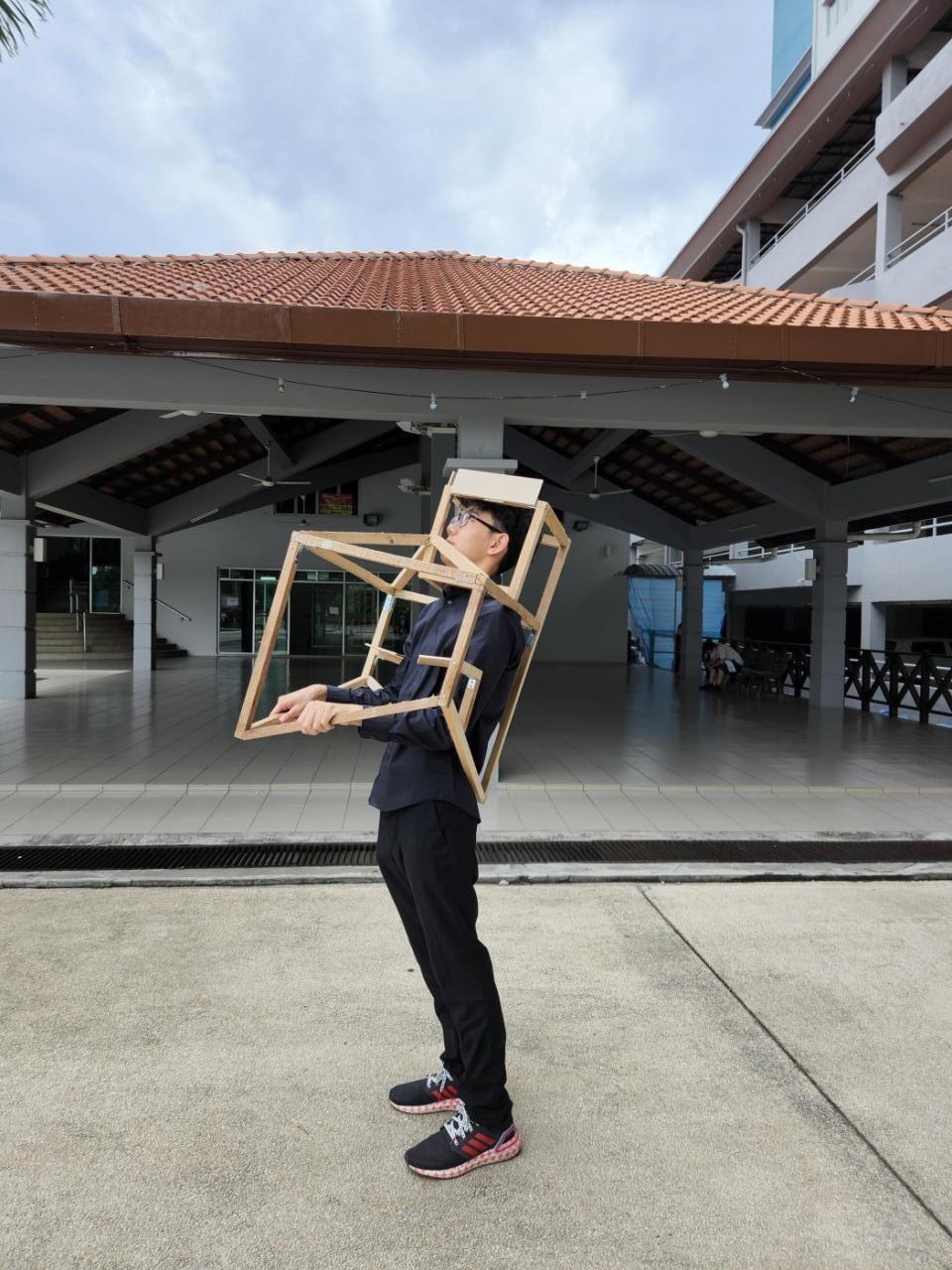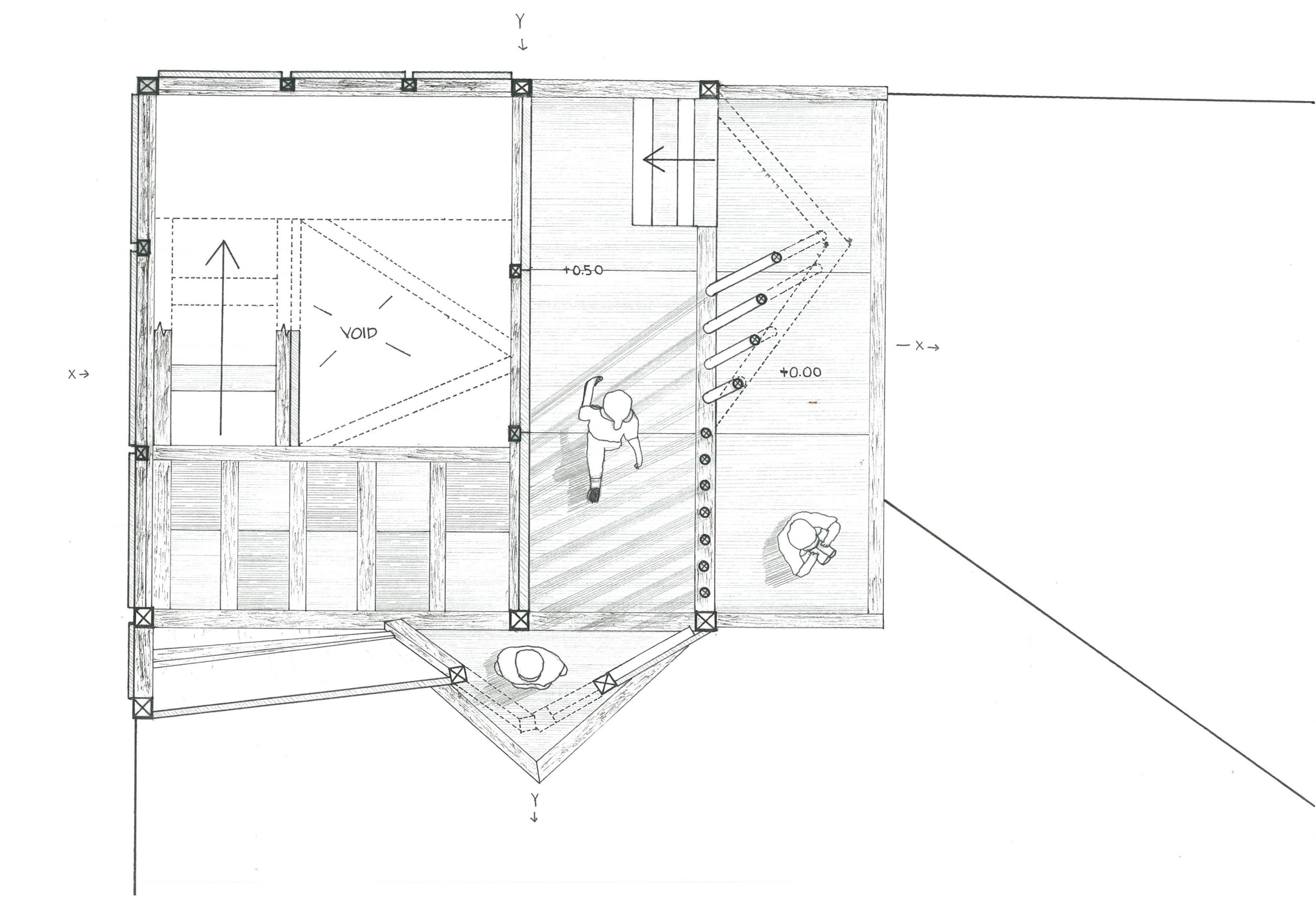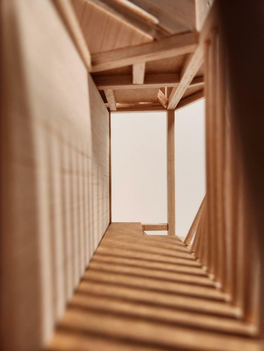 TectonicstudyandthattranslatepaperboardSpatial Apparatusintoskeletalframe,crafting1:1ofthedevice withwoodenframingandenvelop.