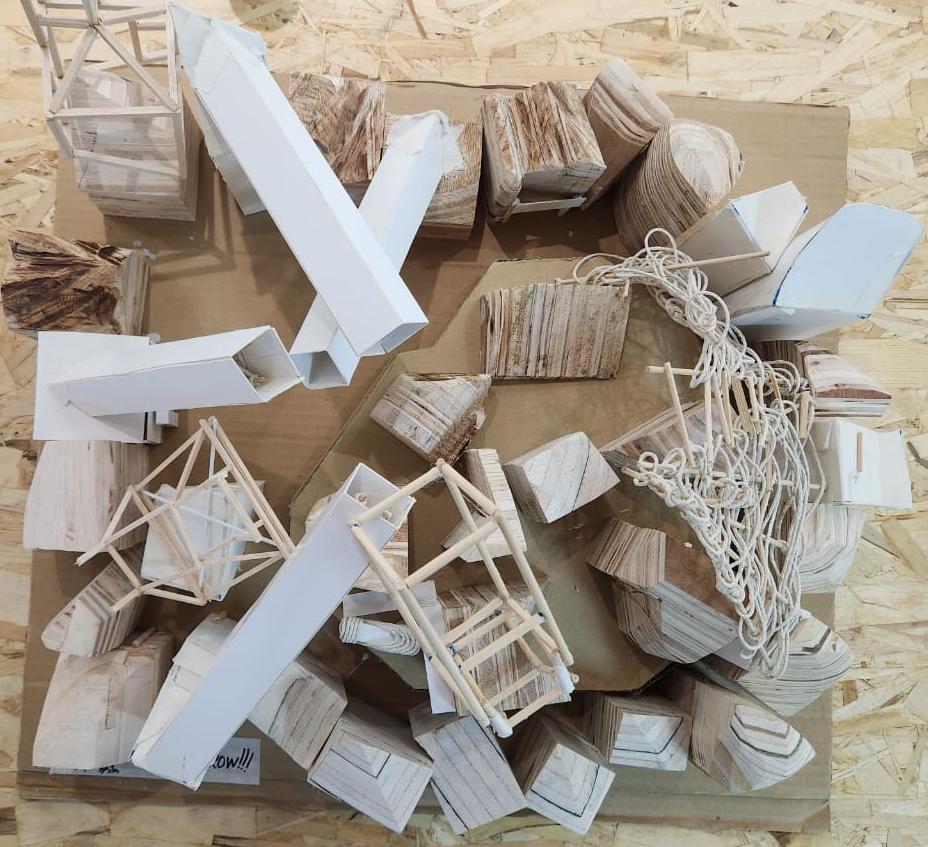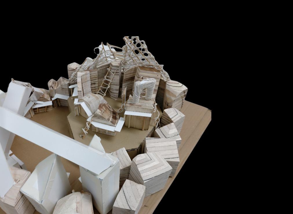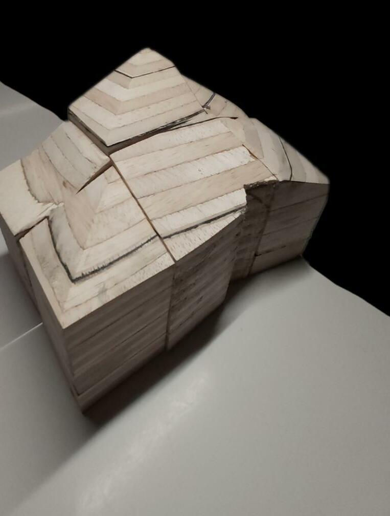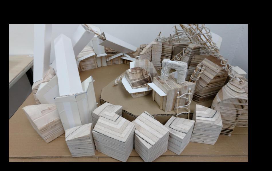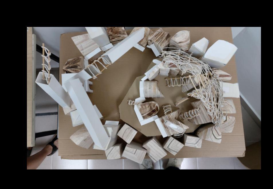 WorkshopP2a 14 Studenttostartwithadaptingabase form[inspirefromaportionof previousmassingmodel]andmakeit withcardboardinto1:1tohumansize. Thiswoodenblockistakenfromthe modelusedinthepreviousprojectof theInvisibleCities. Itwillactasareferenceforthe constructionoftheupcoming apparatus.