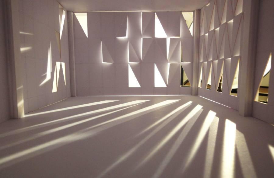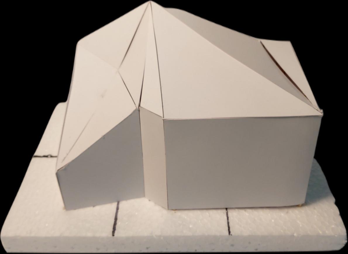 Thefinaldesignoftheroomisrepresentedin thefollowing1:25scalemodel.Itintegratesall theaforementioneddesignaspectsfound withintheimprovednarrative. Asharperformwhichconsistsof openingsallowinglighttopass throughformingapathway whichwillgivethetravellers anexperience,tellingthe storyoftheZobeide.