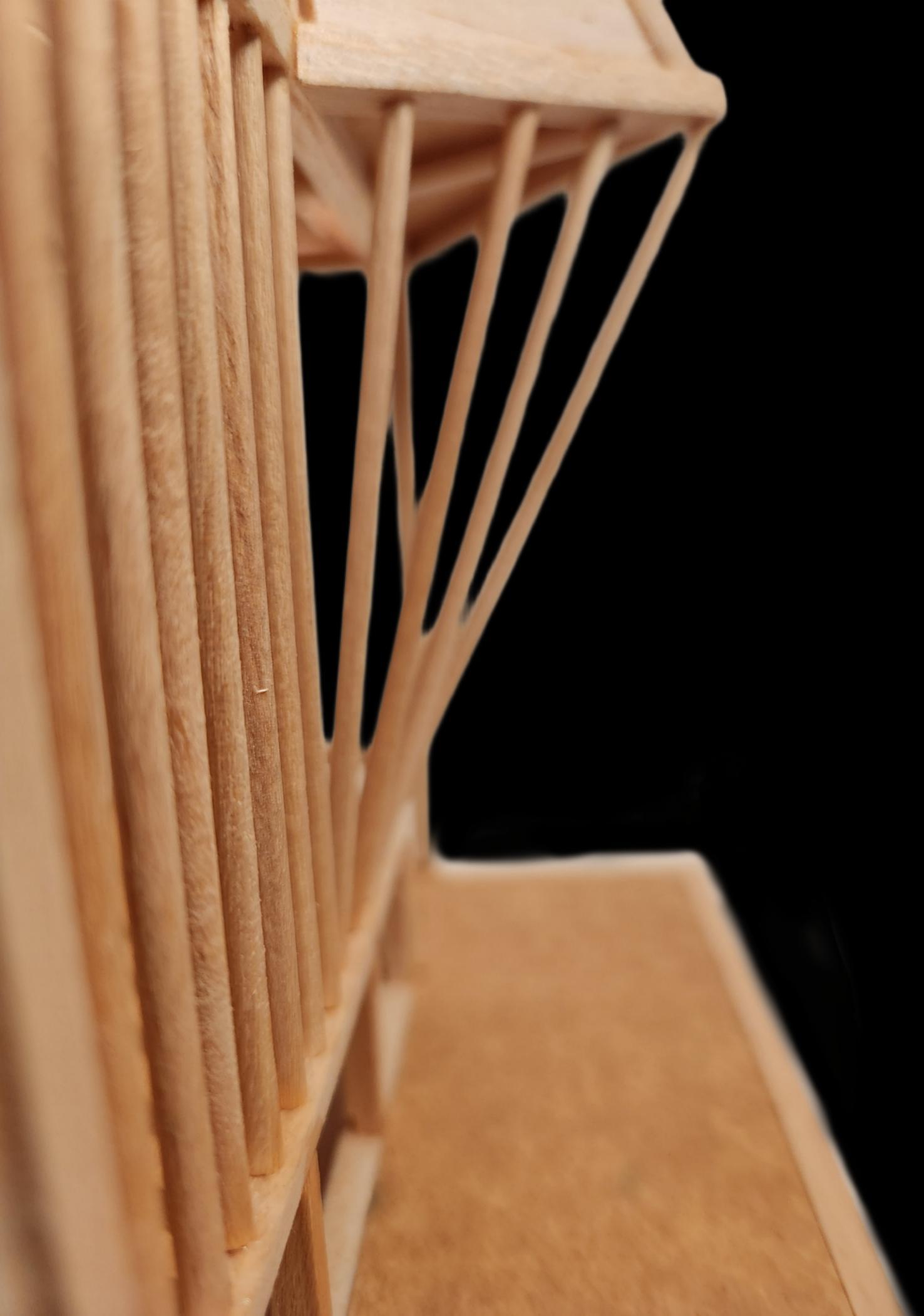 Construction Anattempttoreplicatethemodel usingadifferentmaterial(wood). Differenttechniquesareusedand newly-foundlimitationschangethe form. 05