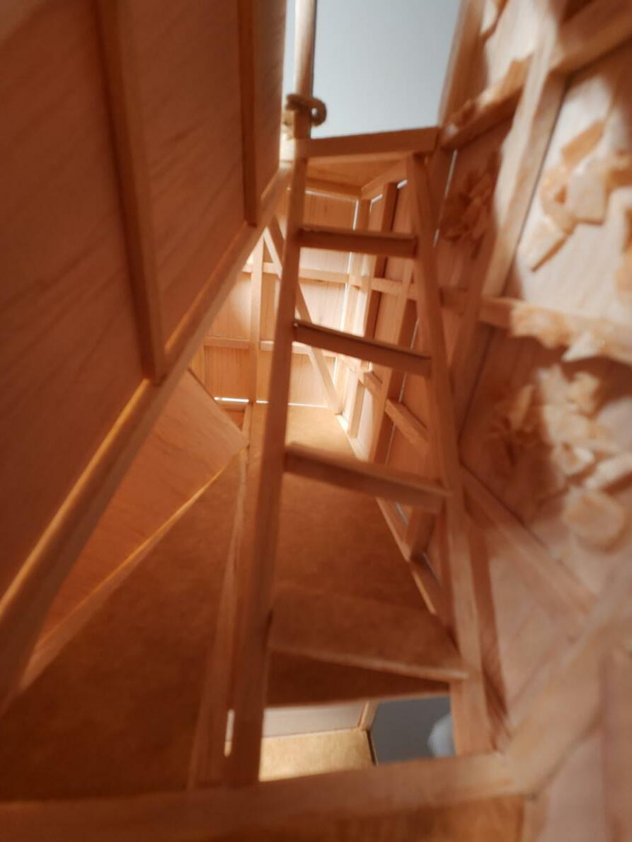 36Thefirstroom Thedesignbeganwitha1:100scale model,placedwithinthecityitself. Withminorchanges,anupscaled1:25modelwas constructedusingbalsawoodasarepresentationfor theactualmaterial,timber. 1:100Modelversion1 1:100Modelversion2 Observationtower,with2 openings Angledformto compliment adjacentcontext Slide,totrap thetravellers Anglesallowtodirect andlimitthefieldof view Thefirstiterationoftheroomtookamajorityofits inspirationfromtheoriginalapparatus.