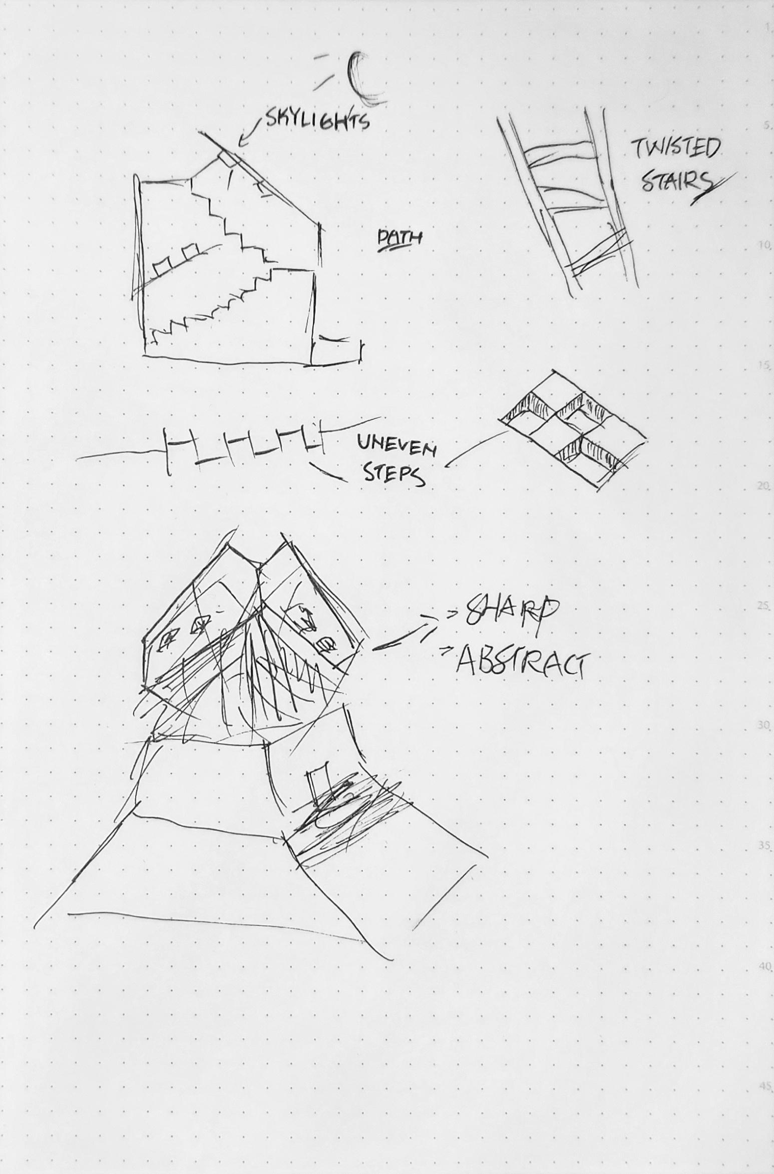 37Thefirstpath Observationtower Observationroom Table Triangularwindows Theangledformdirected andlimitedtheviewtowards thecitystreets,withthe variousanglesproviding uniqueperspectives. Themainareawheretravellers stopandobservethecity streets. Travellerscanputthei belongingsonthetableo plan/mapouttheirjourney. Anelevatedcompactspace whichallowsadifferentand widerviewofthecitywithits streets. Rope Travellerswould enterbyclimbingup. Themainideaofthedesignwastohavetheroomactasatrap. Travellerswouldclimbupintotheroomandbepresentedwithalargeopenview,giving theminsightintothecity. Specifically,theywereviewingdownatthenarrowandtwistedstreetsinhopesof sparkingtheircuriositytoexplore. Theywouldtheneitherclimbupthetowertogetadifferentperspective,orbegin planningtheirfollowingjourneyonthetableprovided. Theywouldslidedownthepathprovided,andbetrappedinthecity. Adjacentcontext