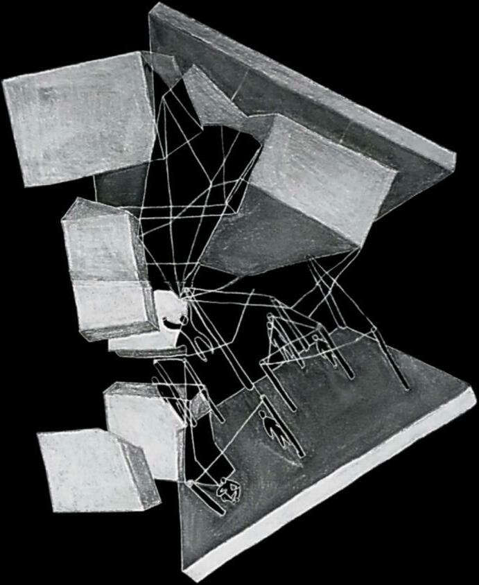 Continuewiththeexplorationof6blocks,studentsfurtherthe explorationofform,relatingtotheirnewly-foundunderstanding oforderingprincipleswiththeirselectedInvisibleCitieschapter. 56inagroup,studentsassembletheseblocksintoanadaptation ofthemassingoftheirInvisibleCity,andphotographand overlaywithsketchmontagestotheirnarrativedrawingof selectedtheInvisibleCity.