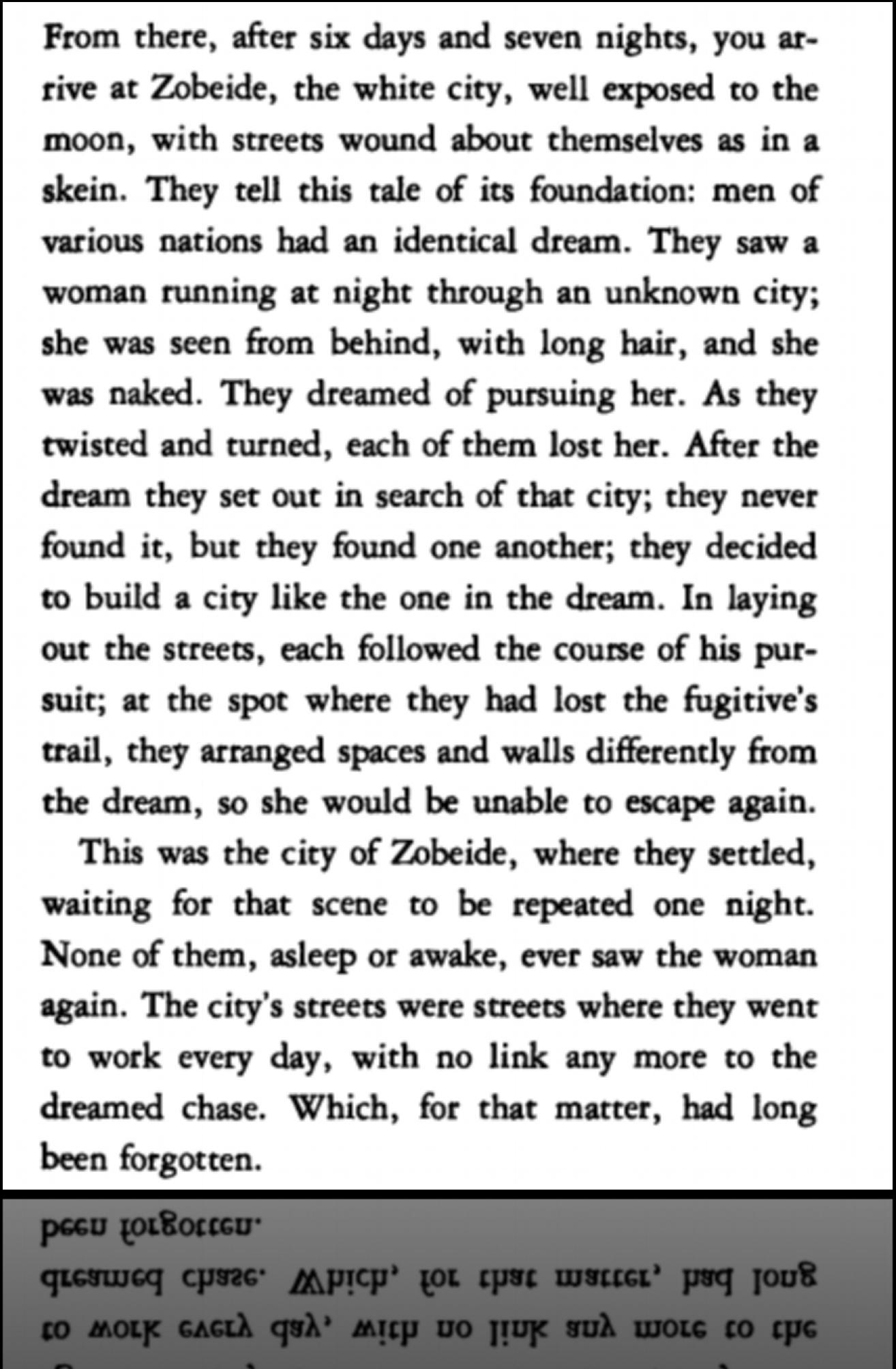 Reachingthefinalplatform,thetravellerswillhave observednotonlythevisualaspectofthecity,but throughthisjourneytheyhaveexperiencedthestory ofthecity.Theywillthencontinuetheirjourney onwards,descendingtoZobeide.