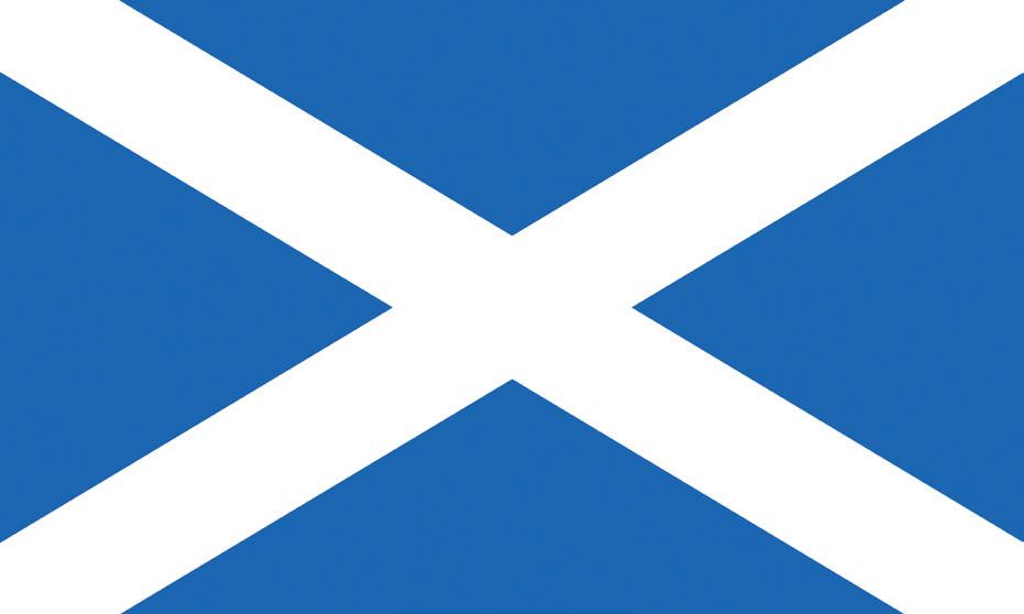 FLAGGFAKTA : Et av verdens eldste flagg. Det har vært i bruk siden 1300-tallet, kanskje enda lenger. Flagget ble erstattet av Union Jack-flagget (se neste side) tidlig på 1700-tallet, men brukes fremdeles ofte i Skottland.