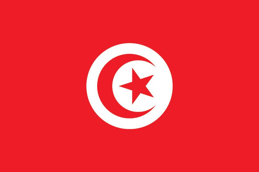 FLAGGFAKTA : Tunisias flagg ble laget i 1827, da landet var en del av det ottomanske riket. Flagget ble fortsatt brukt mens landet var under fransk styre 1881–1956, og ble det offisielle flagget i uavhengige Tunisia i 1959.
